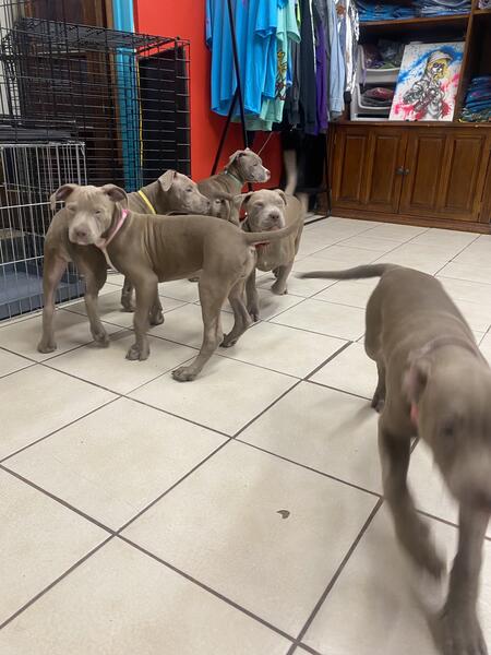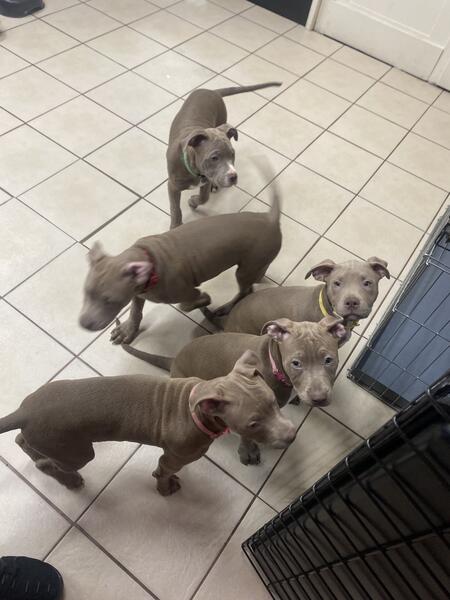 message inksterpuppies about this ad 12 week old red nose pittys, 2 male and 3 females. Each have their 1st and 2nd shots of Provo, and dewormer. Also have the Lapto shot. Perfect age to not only give and receive love, but to also bond to a new master. Crate trained up to 4 hours. Feed Purina One + Plus Heathly Puppy Each come with a leash and harness. First two purchaser if they want will receive 28Lx19Wx21H willing to negotiate to a good home. Please call or text 269-599-8013 |