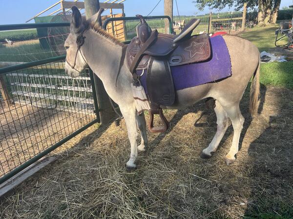 message slckhcmh22j about this ad 5 years old, gelded, healthy, just had the farrier out for a trim, lets us sit on his back a little at a time. I have started working with him under saddle for our daughter so that we can lead her around on him. Used to being with larger breed goats and loves them. We bought him and found that he doesnt care for our dwarf goats like he did the larger goats he is used to. Looking to find someone to give him a great home because he is a sweet boy! Call or text for more info 765-307-8758. Located outside of Dana, IN |