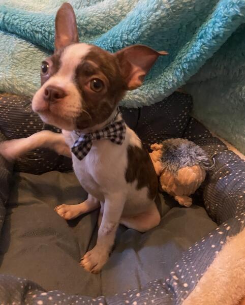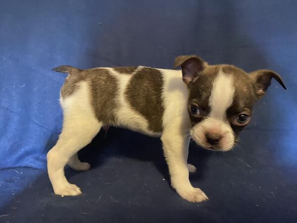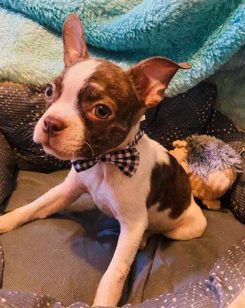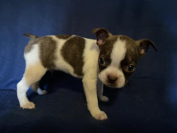 message twinsisa about this ad Rock is an AKC Boston Terrier Splash with a ton of color. Dew claws removed. Has had two puppy shots and wormed. Well socialized. Mom is 15 lbs and Dad is 16 lbs. Rock is ready to come sit on your couch or cuddle in bed with you |