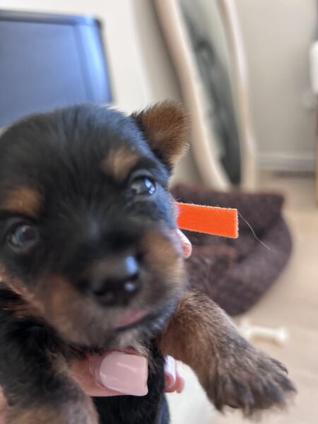 message leiawhaley about this ad AKC Yorkshire Terrier puppies born 10/7/2025 available 11/25/2025. 1 female. 1st shots and worming. Parents on site. |