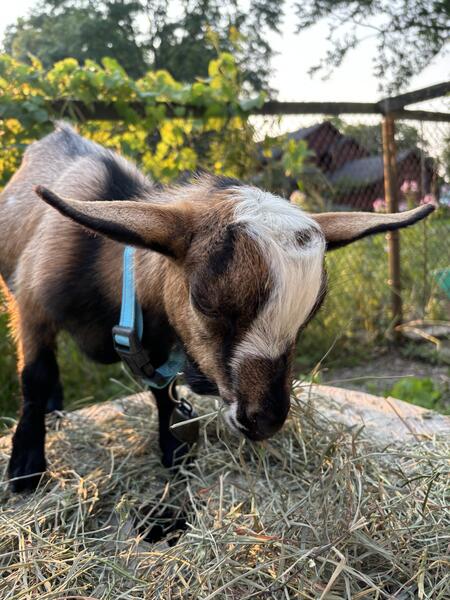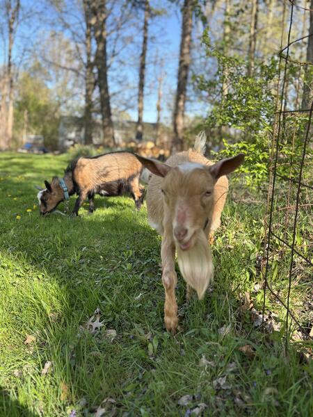 message snbirrell about this ad Three Nigerian dwarf whethers, disbudded as baby bucks; approximately 1 year old (1 was born March and the other 2 were born May 2024 Willing to separate. Available immediately. Hay, grain, mineral, and free-browse fed. Well cared-for; up to date on hoof care, wormer and just now due for CDT booster. Purchased for land clearing purposes but we are a busy family with young children and full time jobs, and unfortunately just not enough time for herding and moving them on the land. Very friendly and well socialized. Small stature- the largest is 50 lbs, then 45 lbs, then 40lbs. Can be used as meat goats or family pets/petting zoo. All from registered ND breeder and pure bloodlines. $150 each or $300 for all 3. |