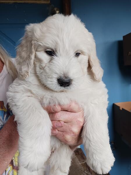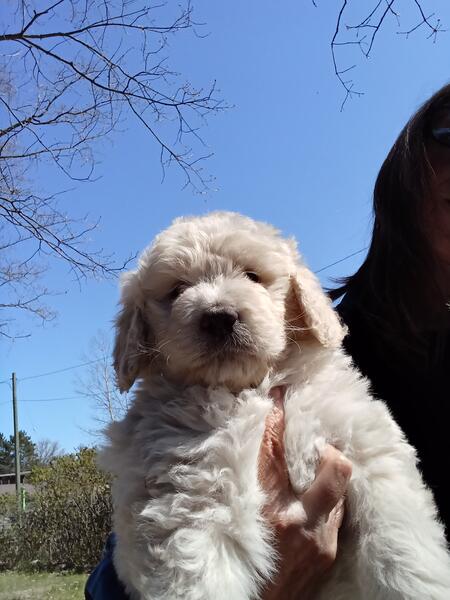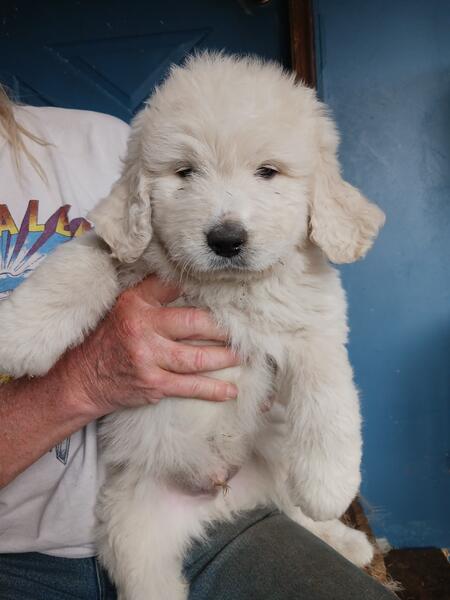 message laurat66 about this ad Great Pyrenees and poodle1 girl and 2 boys (pyredoodles) they have their first round of vaccines they've been wormed and doing good on house breaking text me at 989-339-8665 |
