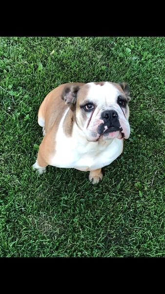 message ericamerryman about this ad 4 year old English bulldog. Stella is a female not fixed and has had both eyes operated on for cherry eye. Sweet girl who loves to play and sleep and cuddle. Loves children and every person. Gets along with cats. Would be best in an only dog home. She is temperamental and protective when it comes to other dogs. |