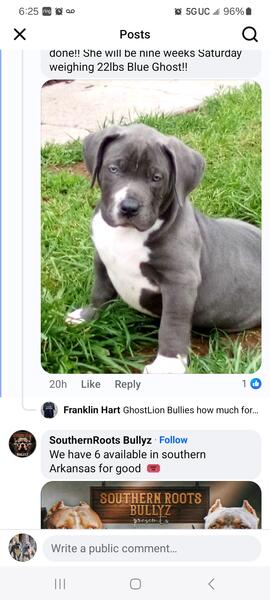 message ghostlionbullies about this ad At Ghost Lion Bullies, we pride ourselves on providing top quality American Bully puppies with ABKC and UKC certified bloodlines. Our meticulous breeding ensures that each puppy displays the outstanding temperament and appearance that these breeds are known for. Adopt a loyal companion with championship lineage today. 4 beautiful XL Bully puppies for sale Mom and dad are both XL Bullies! All puppies come with paper work from the UKC and ABKC! They will be fully vaccinated and de wormed and they will also come with a puppy health check form from a licensed veterinarian Please feel free to contact me with any further questions We have Three females and One Male left! |