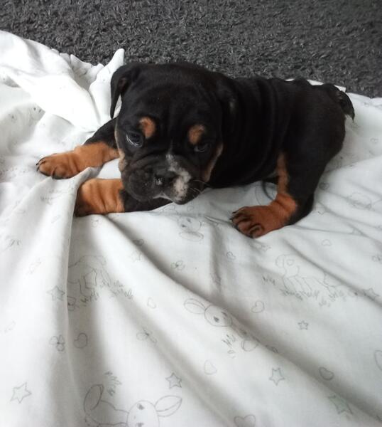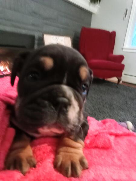 message myfureverlovinpets about this ad Libby Is a beautiful tri color bulldog girl with a sweet personality born on October 6,2025 . she is the smallest of her litter mates.mom is an Olde English Bulldogge and dad is an English bulldog.parents have great temperament.she will have her age appropriate vaccinations and dewormer also an overall veterinary health exam.30 day health gaurrentee.family raised and socialized.a perfect family addition. Ready for her forever loving home on November 29 at 8 weeks of age.if you're interested in this sweet baby girl contact Ruth at 260 350 9319 for more information or to set up a time to come meet her.i do except a 100.00 deposit that will hold her for you until she is 8 weeks of age |