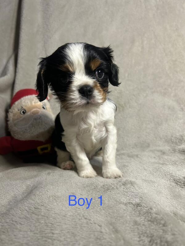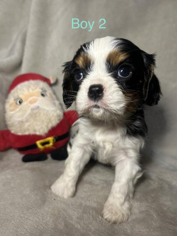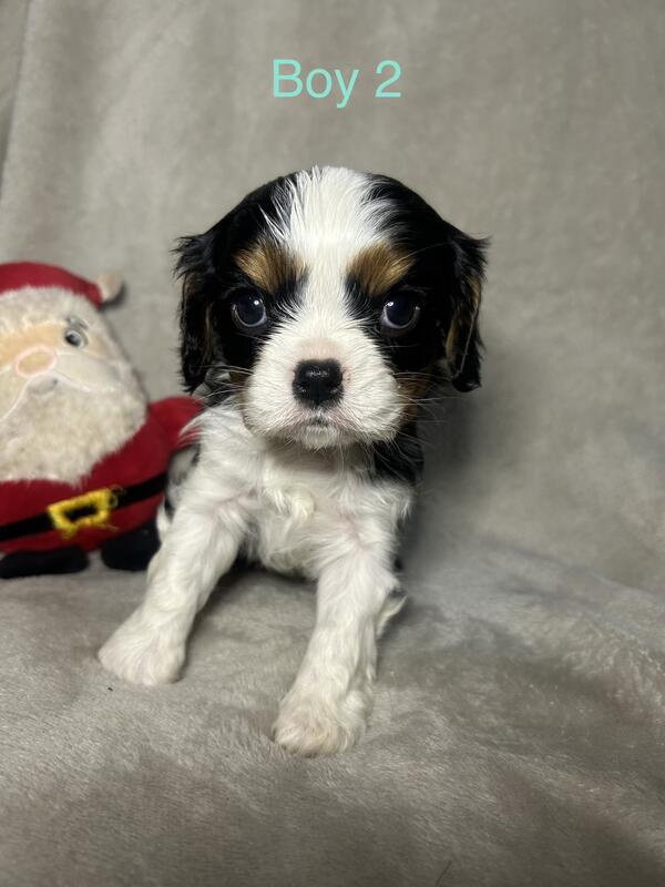 message bsingleton1985 about this ad 2 males tricolor Cavalier King Charles puppies. Beautiful babies will be ready on December 22,2025. They would make great Christmas babies! These 2 little boys are so playful and cuddly. They are tricolored and have beautiful markings! Please call or text 828-260-4959 |