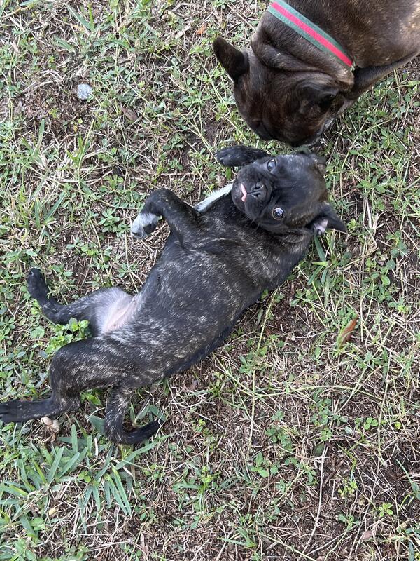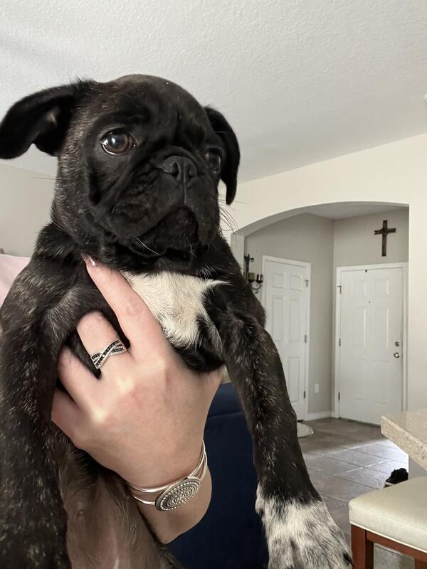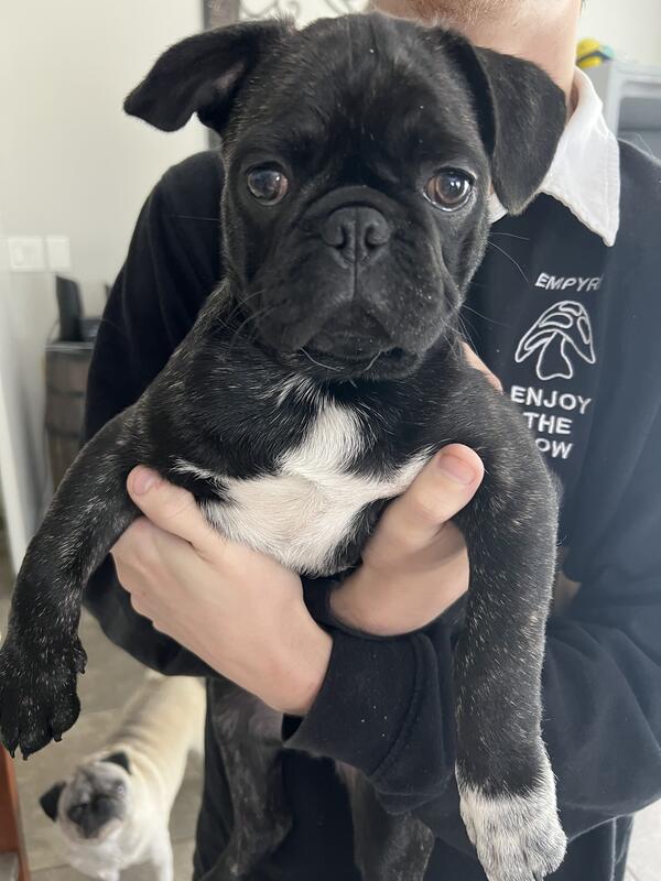 message shoffman165 about this ad 12 week old female puppy available. Mom is a pure tan pug and dad is a pure brindle French bulldog. She does not come with papers or shots. If interested feel free to contact me at 856-217-1667. |