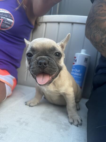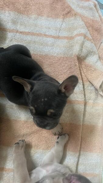 message tabathafrance32 about this ad We have 3 female and 1 male AKC registered French bulldog pups. born May 15, they have been to the vet for first shots and dewormer! They are ready for their forever homes! Solid faced blue is the male, Message for details : 765-866-0668 Crawfordsville, IN area |