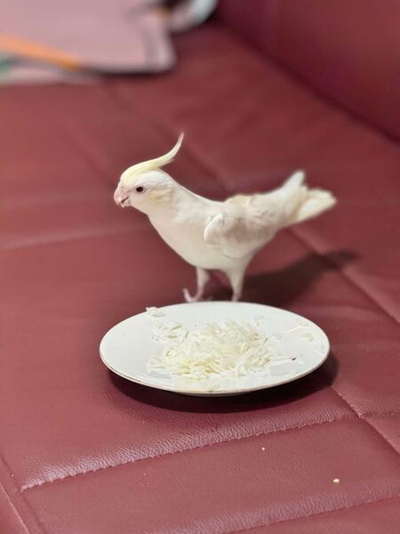Male cockatiel creamino. He is tamed / friendly. Not very noisy at all. Loves to do heart wings, dance around and fly.