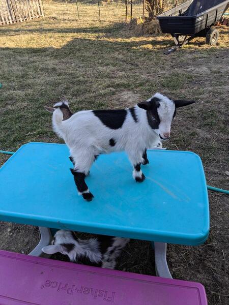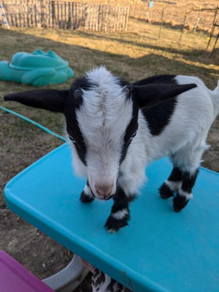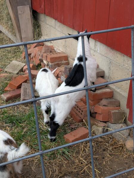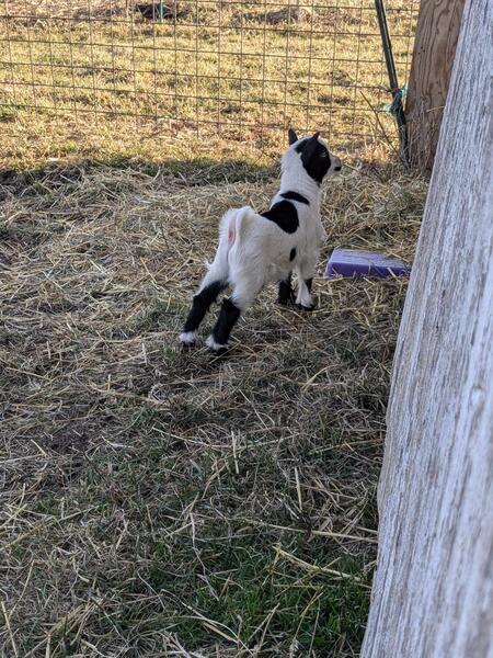 message risenfaith about this ad Roebuck would be a great herdsire for a farm that wants to bring milkness to the herd. His mother produced 8 ounces from 1 teat the first night, which I used to help a mother with quads. Roebuck is a very stout boy with blue eyes. He is 87.5 Nigerian dwarf 6.25% Toggenberg and 6.25% Alpine Swiss. He will have horns, but his mother is naturally polled. He has a ridge just like a Rhodesian ridgeback dog when he is scared or putting on airs.He is a nice boy. He was born on February 17, 2025.READY to go. He has his CDT series. |
