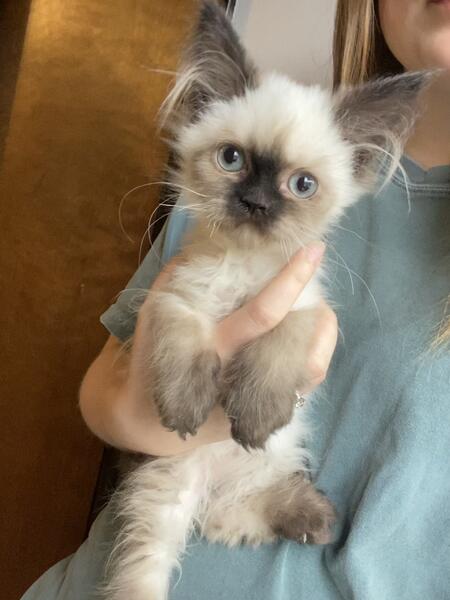 message dkalashnik32 about this ad I have two females and one male in this litter. One blue point female and the other two are seal point. They love to cuddle and are very energetic. They are potty trained and eat dry cat food mix. For more information call or text 6077591964 |