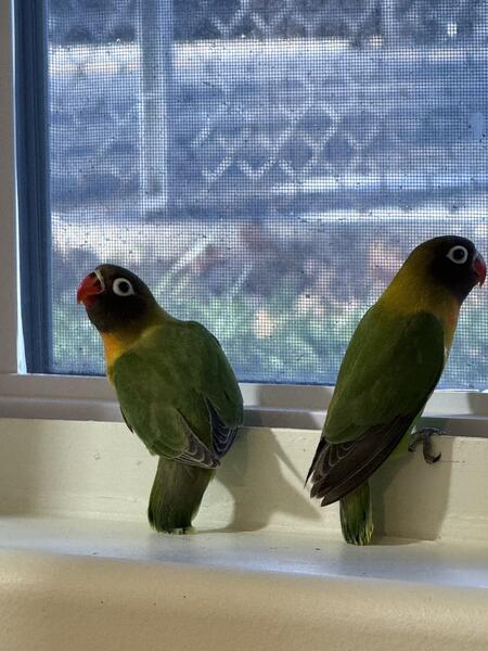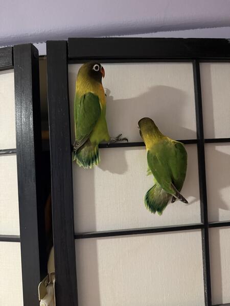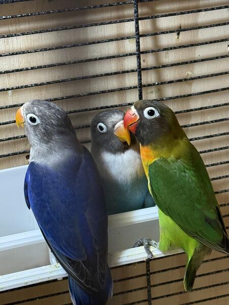 Hello, I'm selling young black mask and blue mask lovebirds for $150 each. If you're interested, text me at (917) 635-819-5 five