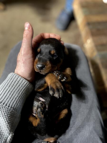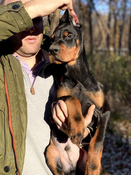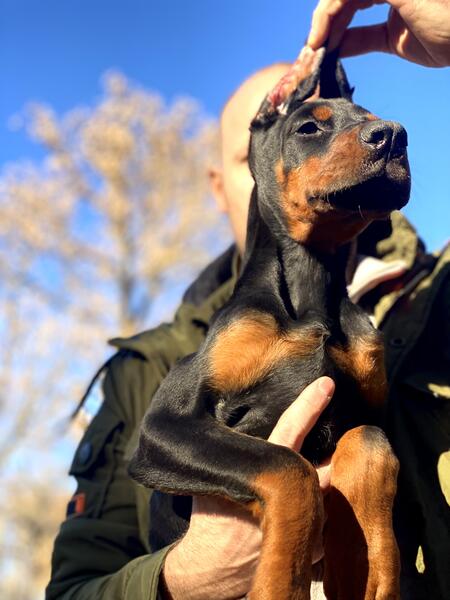 message dejan89 about this ad European Doberman pincher puppies all import from Europe. I have 2 female 3 males puppies 6 weeks old for sale. One brown and one black. Both parents are traditional Black and Rust show line dogs with multiple awards from shows. For any question you can reach me at show contact info Serious inquires only. Thank you |