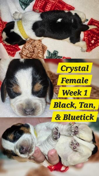 message miloandotiz about this ad Ruby gave birth to 2 females (1 is Black, Tan, & Bluetick, and 1 is Blue, Tan & White and 3 tri-color males (Brown, Tan, & White) on 11/13/25. Ready to go home 1/7/26. We offer limited and full AKC registration. Limited registration will be $1000 and is best for those who never plan to breed and want a companion or hunting dog. Full registration will be $1500 and is best for those who plan to breed and who want to have their dog compete in show/champion/trial events. The deposit to reserve your pup is $400, which is subtracted from the $1000 total, so $600 is due at pick up. If interested, contact us at (218)407-7536 or message us through the Good Dog app at Good Dog now charges 6.5% on every sale, so pricing will be different on there. Check out our web page We send our puppies home with Initial potty training, a Puppy starter kit including the following: Vet records, a microchip registration card, a Food Starter Bag, a Collar, a Leash, a chew, a rollof waste bags, a Toy with Mom and litter mates' Scent, a Blanket with Littermates' and Mom's scents, AKC Registration papers, lifetime inheritable disease guarantee (both parents were screened for genetic diseases/disorders and both are clear) copies of parents genetic results are included with a copy of the purchase agreement. Once your deposit is received, I will send weekly updates with photos of your pup until pick-up. If you have a name picked out for your pup, I can start calling them that. For pick-ups/deliveries, I charge 70 cents a mile. For shipping, I use Nitro Pet Express, Blue Collar, and The Gundog Express. When getting estimates for shipping service, it can take 1-3 business days. message miloandotiz about this ad |