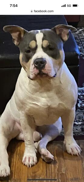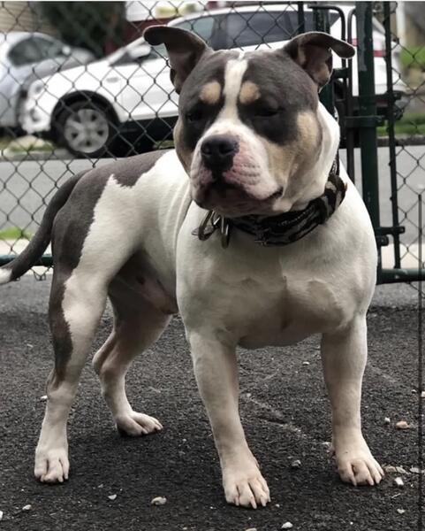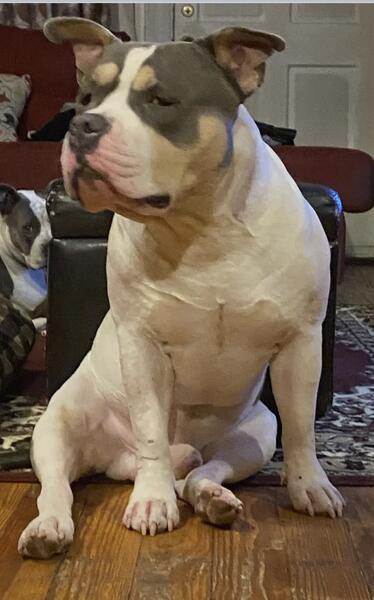 message cnoble323 about this ad I have a piedbald Tri colored American bully Abkc and Ukc registered standard class heavy Gottiline pedigree 17 1/2 inches at the withers 80 pounds |