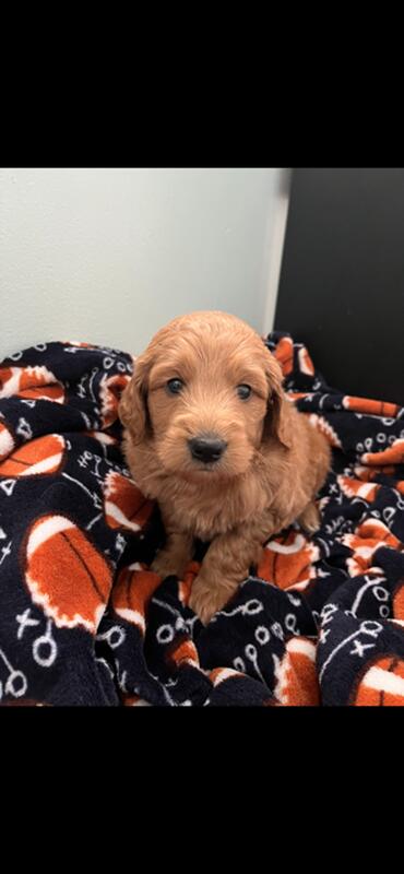 message katey937 about this ad F1B Male Goldendoodle available 12/15. His Mother is a Standard Goldendoodle, and his father is a Moyen poodle, which is between mini and standard. He will be up to date on shots, vet-checked, and dewormed. We are working on house training. He is being raised in our home with our children, so he will be well socialized. Please let me know if you have any questions! |