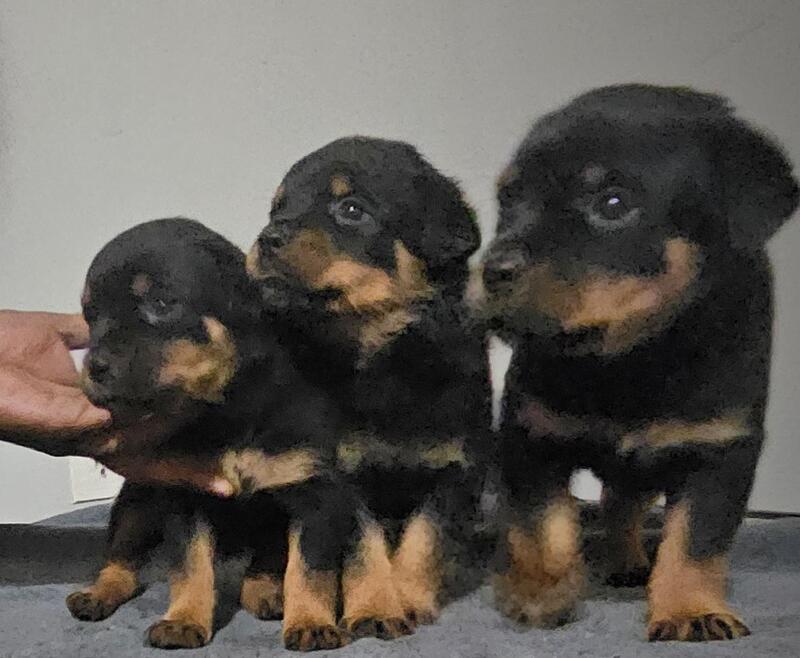message rottyrus about this ad AKC Registered Rottweiler Puppies for Sale Top Serbian Bloodlines! Location: Raleigh, NC We have a beautiful litter of AKC registered Rottweiler puppies available for loving homes! These pups come from famous Serbian bloodlines, known for their exceptional quality and strong working ability. Why Choose Our Rottweiler Puppies? AKC Registered Purebred with official documentation Parents and Grandparents are on-site, very sweet & well mannered but at the same time protective! Serbian Bloodlines Top-tier genetics known for strength, intelligence, and excellent temperament Easy to Train Very smart, eager to please, and quick to learn Perfect Temperament Loyal, confident, and protective, ideal for family and security roles Tail & Declaws Removed, Deworm regularly and up to date on shots Already done for your convenience and their comfort. These puppies have been raised with care and socialized to ensure theyre well-adjusted and ready to be your loyal companion. Dont miss out on these amazing puppies with top-quality pedigrees! Located in Raleigh, NC For more details or to reserve your new best friend, please contact us! Serious inquiries only. Follow my IG page @Rotty_r_us Phone number 919-740-3478 1800 with Akc registration papers negotiable without papers message rottyrus about this ad |