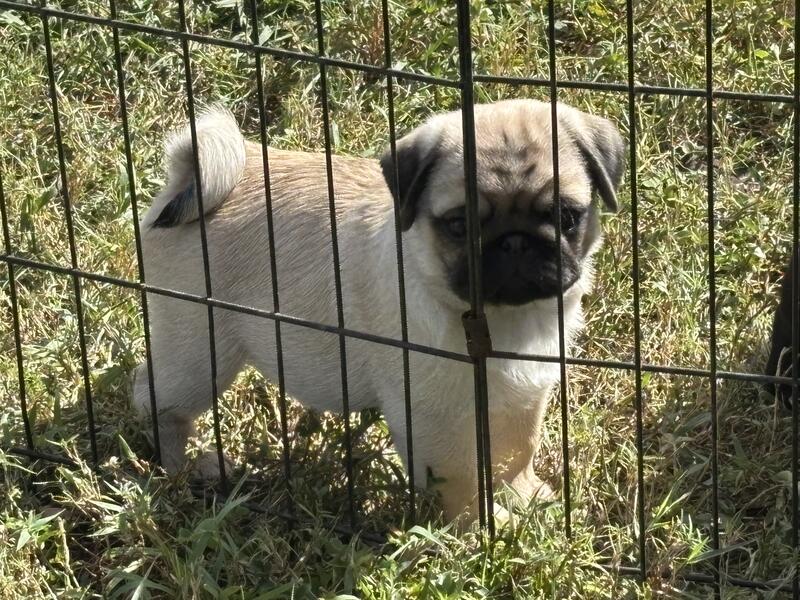 message copperridgefarm about this ad Well-bred pug puppy out of Manic Monday, the Pug Dog Club of America's #1 stud dog of the year. He's produced more champions than any other. Mother is a Ukrainian import. This beautiful fawn boy is the only one available at the moment. We are holding back the girls a little longer so we can make our pick. But this beautiful boy is available to the right home. He's ready to spend the holidays with his new home. |