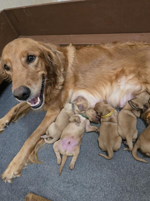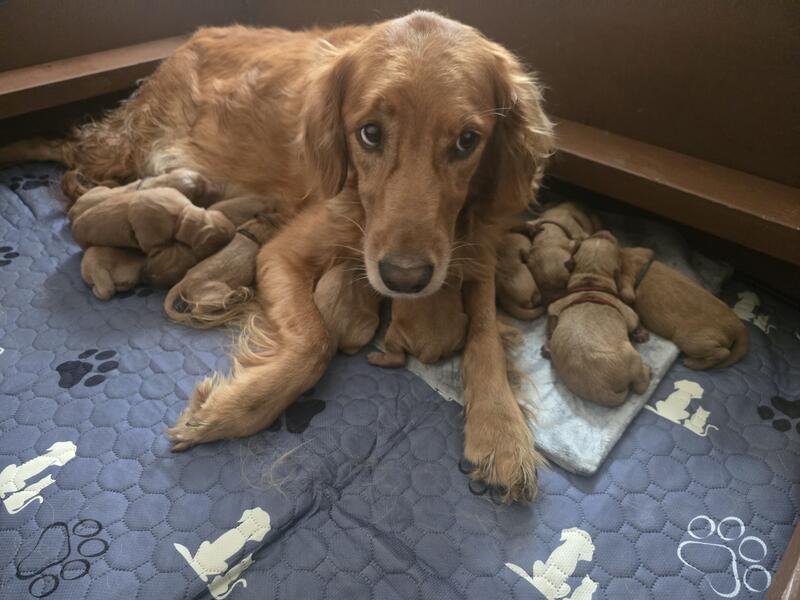 message greatcreek about this ad Beautiful litter of red goldens will be ready 12/7, just in time for Christmas! Mom and dad have had all genetic testing and OFA'S completed. 6 males and 5 females. Puppies will have 1st set of shots, dewormed, AKC Limited registration, AKC Reunite Microchipped, and will have 2 weeks in puppy boot camp to help build confidence and foundations for manners and basic obedience. |