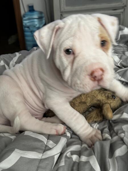 message kisses1274 about this ad I have a10 week old pitbull puppy for sale he is almost all white with beautiful green eyes he is a small little guy. He has his first round of puppy shots. Sold |