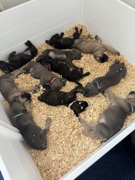 message imperialguardcorso about this ad Update 12/26/24 Our adorable puppies will be 6 weeks old this Saturday 12/28 and will be ready to go to their new homes after 01/11/2025! These sweet pups are well-socialized with children and other animals, making them the perfect addition to any family. Theyve had their tails docked, declaws removed and will have first round of vaccinations by time they go home to you. For more information or to make a deposit, reach out to Josh at 401-651-0498. Welcome! Im passionate about breeding Cane Corso puppies that embody the best traits of this incredible breed. Our puppies are registered purebreds, coming from champion bloodlines. Raised in a loving home around children and other animals, they are well-socialized and ready to become loyal companions. If youre looking for a strong, protective, and affectionate addition to your family, Id love to connect with you! Feel free to reach out for more information. 12 puppies in total. 8 Males (3 black Brindle, 4 grey brindle, 1fawn brindle) 4 Females (1 fawn brindle, 1 black brindle, 2 grey brindle) message imperialguardcorso about this ad |