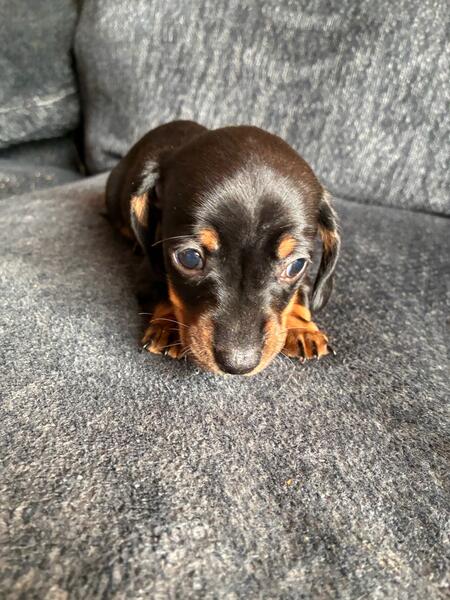 message dnllh105 about this ad We have one short-haired black and tan female left. She will be ready to go on 11/7. $650. She has been wormed and will have her first shots on 11/5. |