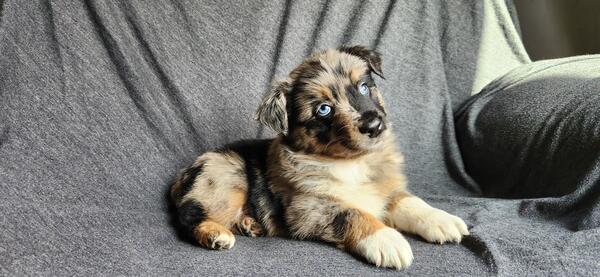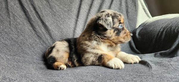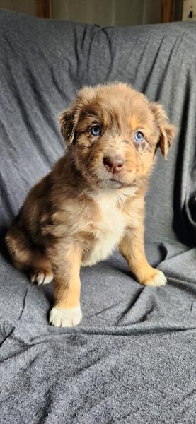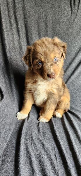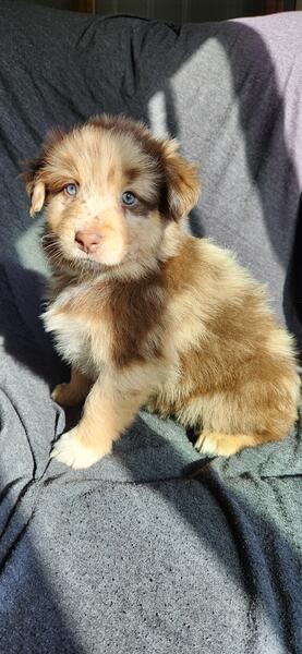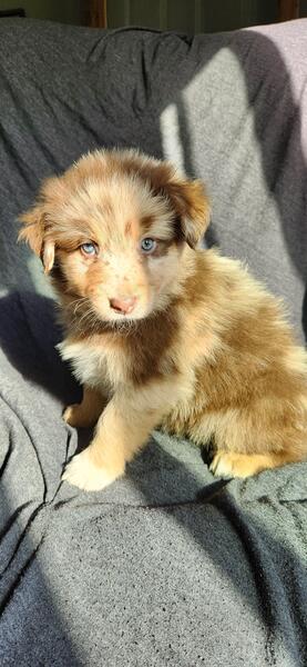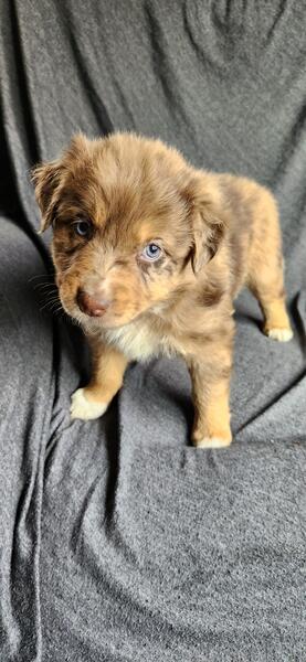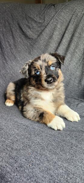 message farmlovinaussiemi about this ad Akc Standard size Australian Shepherds ready November 25th Out of ASCA/AKC standard health tested parents Raised in our home with cats and other dogs. Pups leave at 10 weeks old, well started on potty training. Pups come home to you: 2x vaccines Biweekly dewormings Microchipped Vet checked Tails docked and dewclaws removed We have four available Mercy blue merle male $1500 Hope red merle female $1500 Joy red merle female $1500 Grace black tri female $800 |