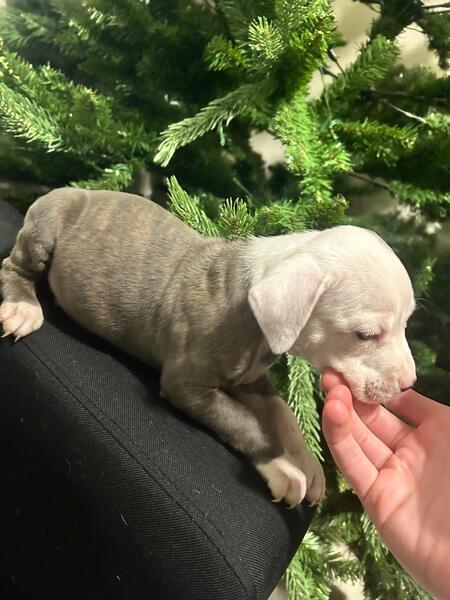 message funkybreeder about this ad Our dearest family dog had a purebred litter of pitbull puppies that are ready for rehoming. They are going fast! Only these three males are left. The only Bluenose one left has higher fees associated with him, DM for more info. The puppies are all healthy and have been cared for according to standard. Pitbulls make for great family dogs since theyre good with children, typically a healthy and robust breed, intelligent, social, and can also function as guard dogs. For this litter, the mother dam is a Rednose Pitbull and the father sire is a Bluenose Pitbull. Both breeding dogs are purebred family dogs and have CKC/UKC papers and DNA tests. The puppies got a good mix of the rare attributes from both parents, where the mother has bright blue eyes and the father has a grey and brindle coat (photos included for reference. The remaining phenotypes of the litter are Bluenose and Brindle. All these puppies have received basic potty-training and crate-training, and have been vaccinated and microchipped. We are looking for responsable, committed new owners for our fur babies. FYI the mother of the litter is a social media influencer dog so staying in touch after rehoming should be fun and easy! For more info or photos, DM. message funkybreeder about this ad |