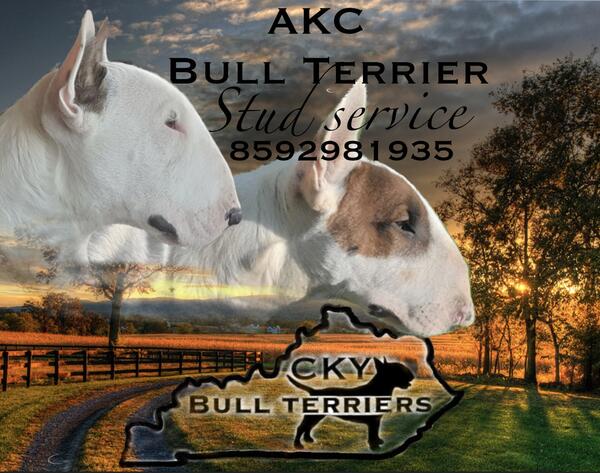 message ckybullterriers859 about this ad AKC males up for stud they have everything you could ask for from head shape to structure imported bloodlines in pedigree just all around top of the line Bull terriers call or text 8592981935 if interested in stud service 1000 cash due at the time of breeding |