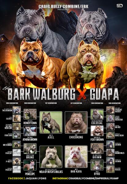 message craigbullycombine about this ad I have 2 female and 2 male pups still available from my most recent litter. ABKC papers in hand. Champion Bark Whalburg X Guapa (linebred rocko) Puppies are 5 weeks old just had first round of shots done. There are no faults in this litter, all pups are structurally correct and will be getting health certificates from vet before 8 weeks. Great foundation for anyone getting into bullies. 2k-4k range Free shipping is available Instagram @craigbullycombine Text 252281780six |