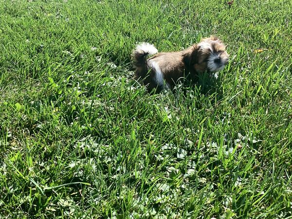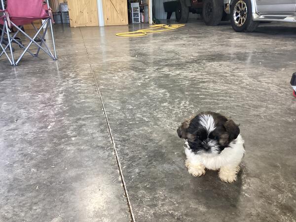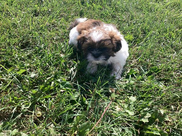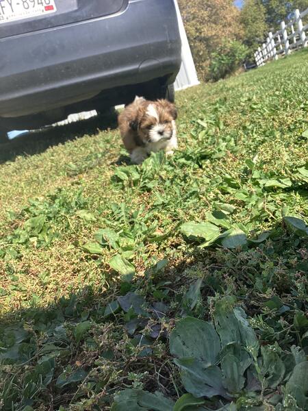 message liberty09 about this ad 3 brown and white male teddy bear puppies for sale. Teddy Bear puppies are designer dogs, which means they are a mixed breed. These dogs are a crossbreed between the Shih Tzu and Bichon Frise breedsthats where they get their good looks and small size! These adorable little dogs dont shed and hardly bark. This breed usually grows up to 9-15 inches and weighs between 10-20 pounds when fully grown |