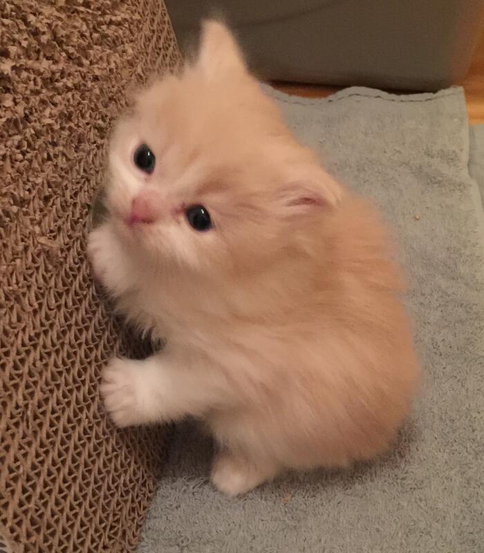 message radarragdolls about this ad This special kitty was just born 10/12/2025. He is already very active and assertive in finding his milk supply! His coloring is a mitted buff bicolor, which is considered relatively rare. The buff coloration is an uncommon dilute variation of orange or red, seen primarily in domestic shorthair breeds. Additional details and photos will be added on a regular basis as the kittens grow and develop. We breed for soft coats, variety of beautiful colors, and sweet endearing personalities. Is this precious kitten your next best friend-to-be? Please text me at 517-225-7861 with questions and interest. Our kitten sales include first vaccine, shot record, litter trained, & veterinary wellness exam Update 11/13/2025 - This kitty is becoming the most adventurous and wants to explore new territories ahead of his litter mates. He is also the first to lap water out of a bowl and the first to use the kitty litter! He is bold and friendly with a quiet manner. He just starts marching out in new directions without any fanfare. Here we go! Update 12/11/2025 - Creampuff had his pre-sale veterinary wellness exam on 12/11. "Excellent Health He is now ready and available to join his new, loving family. Will that be you? Update 12/12/2025. SOLD message radarragdolls about this ad |