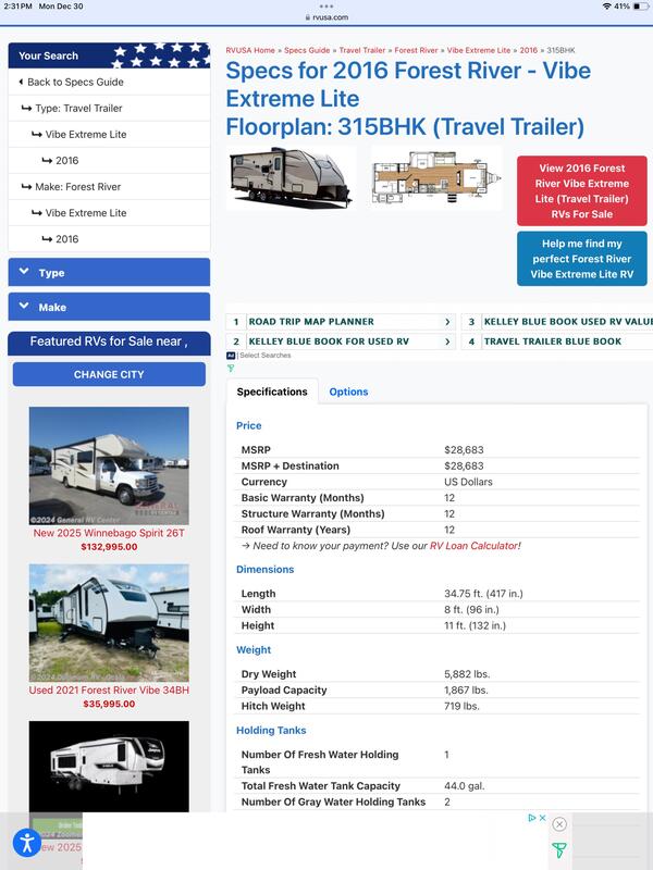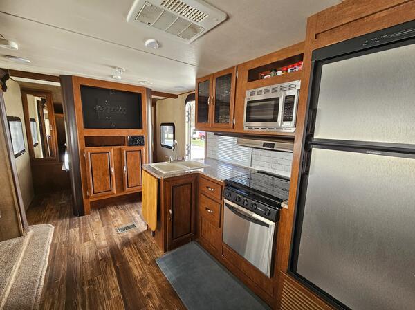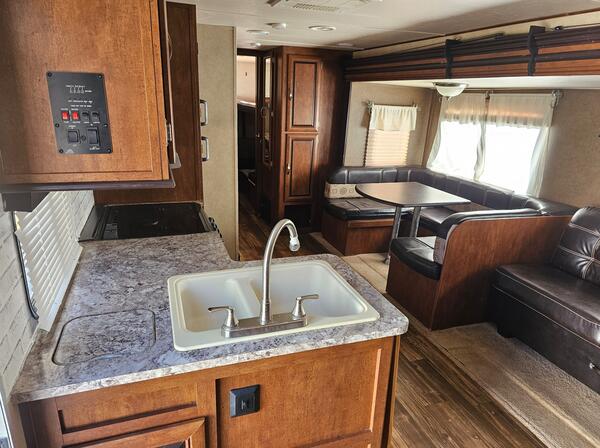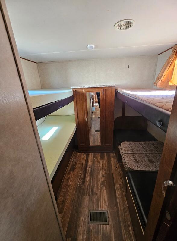message mandeee58 about this ad Really lovely camper! It was our dream to own a camper like this, but unfortunately we have not been able to use it as much as we wanted to. We want it to be used and loved and so we are selling. It has a slide out which makes it feel very roomy in the living room/ kitchen area. It has a private master bedroom with doors that close to give extra privacy, bathroom with tub, and a bunk room in the back. The bunk room has 4 bunks! There is an additional pull out bed and the dinette converts to a bed- so it can sleep 10. We have only had the opportunity to use it 2 times since we have had it, but both times we have enjoyed staying in it with our four kids. It is very light for how spacious it is at 5,882lbs dry. It is 34.75 long. All systems are working. It is valued at $28,600 but we are selling it $20,000 for a speedy sale and hopefully to skip the dealership. Feel free to reach out if you would like to come see it. message mandeee58 about this ad |