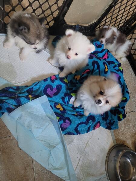 message stchn721 about this ad Male and female pomeranian puppies 8 wks 1st shot dewormed 3 extra fluffy ready to go to thier furever homes. Parents on site |