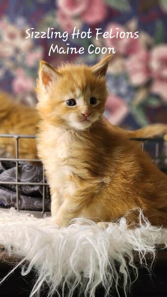 message littlelake130 about this ad Three Red and One Tabby male. One Black smoke female. DOB 5/19/2024 TICA Registration, first shots, wormed, micro chip, negative FeLV/FiV test, health guaranty and 30 days Trupanion Health Insurance. Sizzling Hot FeLions |