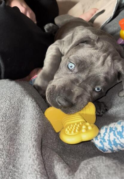 message carollynnsane about this ad We are a small home breeder of BLUE Great Danes - All Blue and only Blue Danes. Our Danes are raised in the home and treated as loving members of our family. We breed only blue Great Danes. We are accepting applications for our next litter of beautiful blue puppies! We are expecting a litter of blue puppies mid-January 2024 Joan, our AKC registered female and dam, is OFA tested for eyes (normal heart (normal thyroid (normal hips (good elbows (normal patella (normal) and ankles (normal She is an American Great Dane. Were hoping that since she is a bit smaller than her European counterparts that we will have the pleasure of her company longer. She is a svelte 125 pounds and is a true love bug Joan comes with exceptional confirmation. Joan is an AKC Canine Good Citizen and she is a certified service dog. The sire of this litter is Ghost of Rebel Danes. Ghost is a dock diving champion. Ghost has earned his DC, CGC, TKN, and his DSA with many other titles after his name. Ghost is also OFA tested for eyes (normal heart (normal thyroid (normal hips (good elbows (normal patella (normal) and ankles (normal) Hes athletic, has a great personality with no aggression issues. WE WELCOME YOU TO CONTACT US FOR MORE INFORMATION: 773-613-0174 or email us at lcbluesgreatdanes@gmail.com or carollynnchm@gmail.com We are located on the north-west side of Chicago. $2,500 price is for limited registration. You can Venmo your deposit to @Carollynn-Chmielewski or Zelle carollynnchm@gmail.com or Carol Chmielewski. There is a $500 non-refundable deposit due to reserve your puppy. The remaining $2,000 will be due IN CASH when you pick up your puppy at 8 weeks old. We welcome you to make an appointment to come and meet the puppies and pick one for yourself. carollynnchm@gmail.com or 773-613-0174 You can see more photos of our beauitful puppies at Visit out webpage message carollynnsane about this ad |