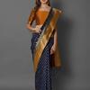 message pritee about this ad Product Highlights Share Deals Get Orders from Friends & Family Earn Money Transfer to Bank Earn Upto 8.5% Profit on all Myntra Transactions Profit will track within 1 hour from the time of transaction Profit will get confirmed within 80 days of transaction Product Code: 10430788 Design Detail: Navy Blue banarasi woven design saree and has a zari border Blouse Piece The model is wearing a stitched version of the blouse Origin: Banarasi sarees originate from the city of Varanasi (Uttar Pradesh These are well known for the Mughal Era inspired designs in golden as well as silver brocade or Zari. Length: 5.5 metres plus 0.8 metre blouse piece Width: 1.06 metres (approx) Update your wardrobe staples with this exquisite traditional saree from Mitera. This navy blue design can be paired with an elegant pair of heels and minimalistic silver jewellery for your next family event. Saree fabric: silk blend Blouse fabric: silk blend Dry-clean httpsmyntr.it/Bb5k5By message pritee about this ad |