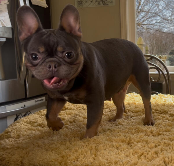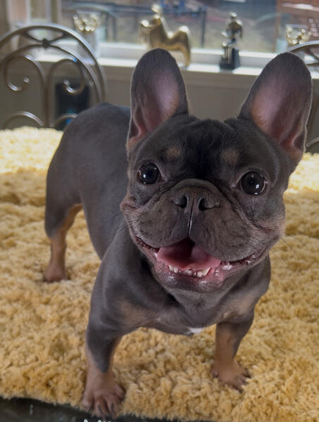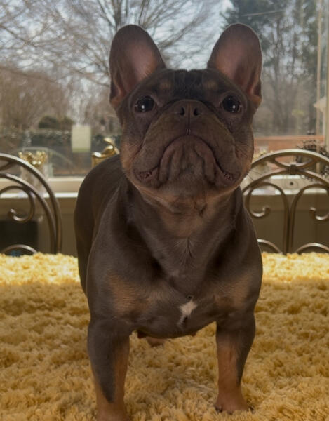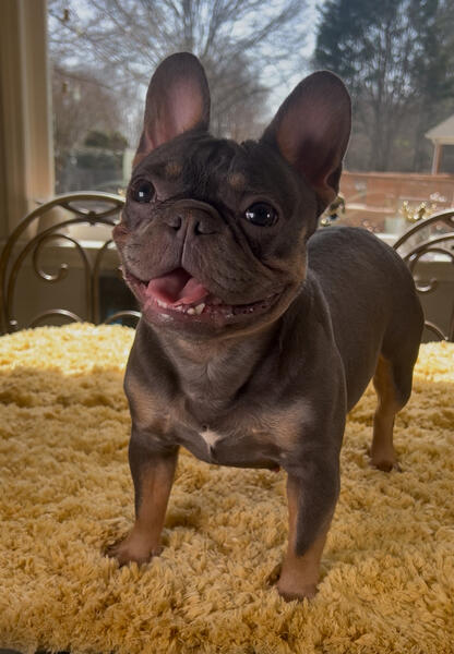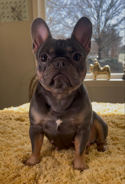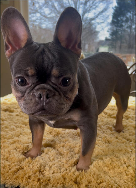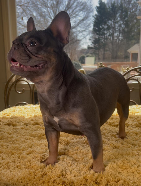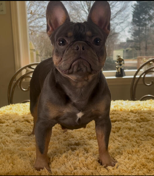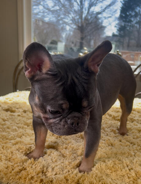 message sevenfigure about this ad This Blue & Tan Female started bleeding today 11-12-25. She carries CoCo & Isabella. Her Dad is a New Shade Isabella off of a Jager Meister, son. She has only had 1 litter so far of 5 and produced strait Micro frenchies! Tapp in quickly and skip the line. She only weighs 13 pounds |