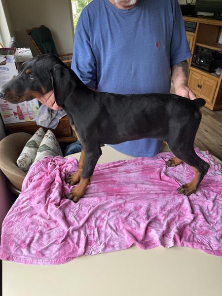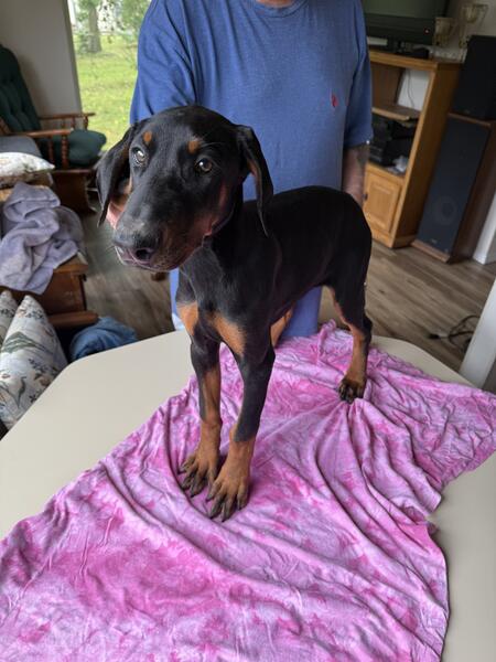 message swmiskycountrykennel about this ad Black and tan Doberman female puppy. American and European bloodlines. Born 6-11-2025 Dew claws removed and tails done. Current shots and wormings. Web site is swmiskycountrykennel.com call or text preferred. 269-400-0516 |