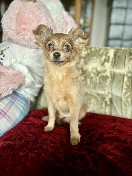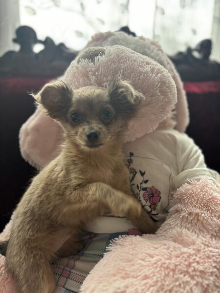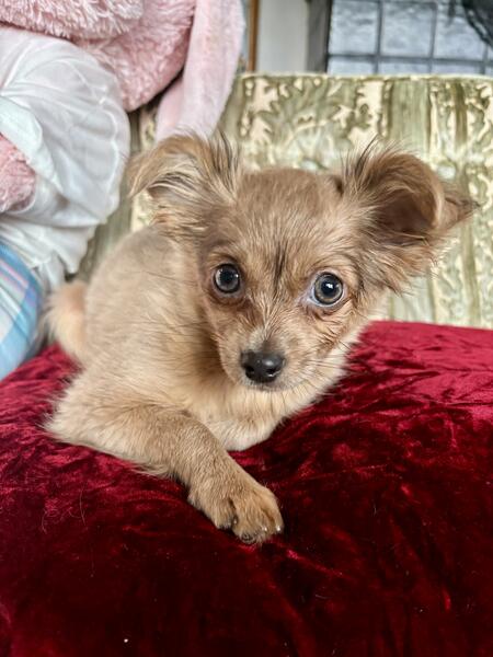 message puppylove19 about this ad 3 adorable female pomchi puppies ready for their forever loving homes. Raised in a family setting so very social and sweet girls. 11 weeks old and first shots. Text Four 19- 270-six82eight One female left |
