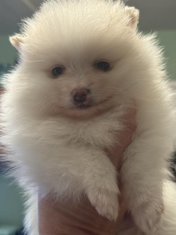 message taniasue906 about this ad Located in upper Michigan near Sault Ste. Marie Michigan. Puppy will be ready Jan 7th , she is solid white except one sable colored ear. ( very unique markings. These are Pomeranians.purebred, no papers. Will be dewormed and first vaccine I have two litters . Second litter is ready Jan. 10th . One male cream and white. Will stay small topping out at 7- 8 lbs. might deliver. |