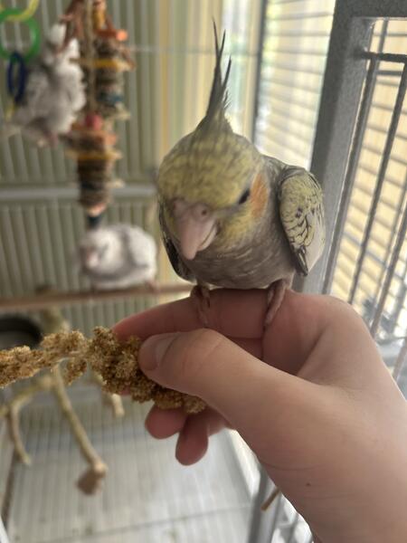 message rayanm11 about this ad Hello all, looking to rehome my lovely 3 month old yellow pearl cockatiel. The gender is presumably female due to behaviour. Very quiet bird that loves to go out of its cage and explore. She is very bonded to humans and will get used to you very quickly. Located cross streets 9 Mile and Middlebellt |