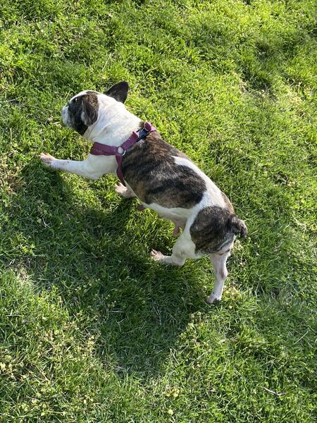 message ajdro2018 about this ad 6 year old pied Frenchie female Im retiring. Shes still intact but trying to downsize. Free to a hood home. Text or call . (240)273-5548. Pick up in Suitland md |