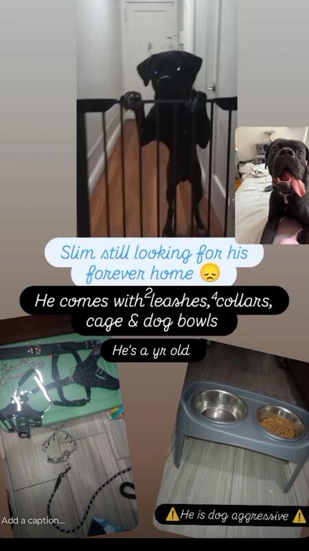 message correa about this ad Slim is a one years old July 24 He is a Cane Corso male not fixed House broken Comes with cage collars dog bowls and stand for bowls and whatever food he has left Slim does bark when first meeting you He just protective an territorial with us because we have had since 3 months But if you take the time an patience to work an bond with him I promise you will love him just as much as we do Only rehoming because my home is to small for him an I feel he deserves a bigger space an yard He does enjoy playing tug of war an belly rubs He does have a bad habit of jumping up on ppl but that's because he doesn't understand his size an just wants to gives hugs and kisses Asking rehoming fee $175.00 Email back on here or text 347 353 6077 If interested you must pick up Bronx NY ASAP he doesn't find a home soon unfortunately shelter is the next option |