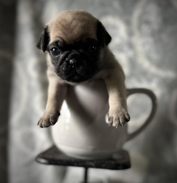 Male Pre-Spoiled Pugs available now. Born 6/19/25 they come with first shot and wormers.