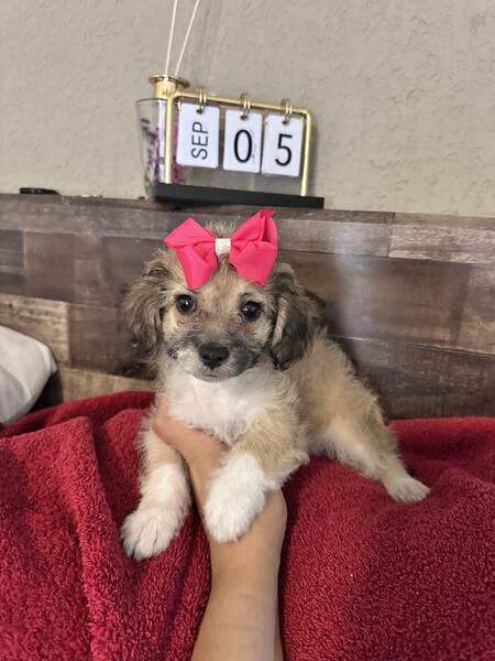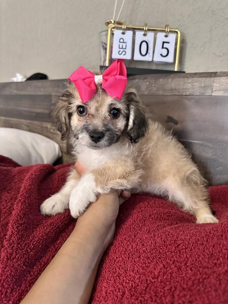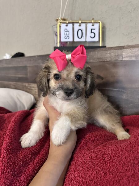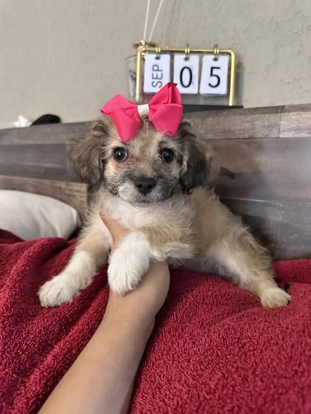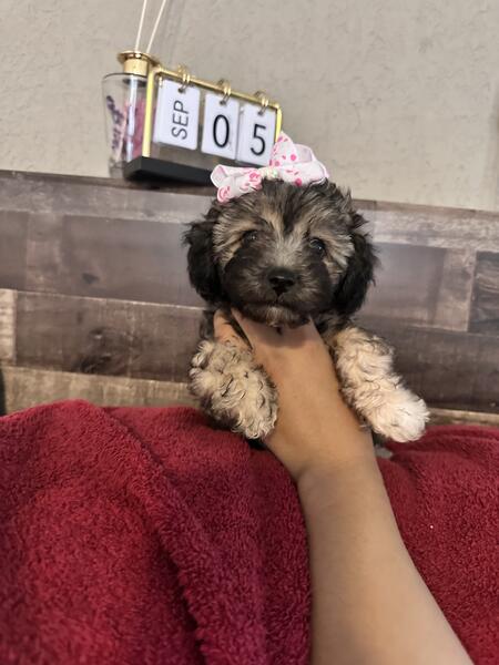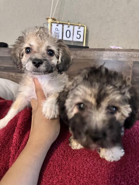 Both are female poodle yorkie mix will be small fully grown 8 week of age currently pad trained