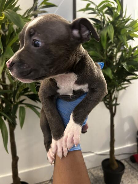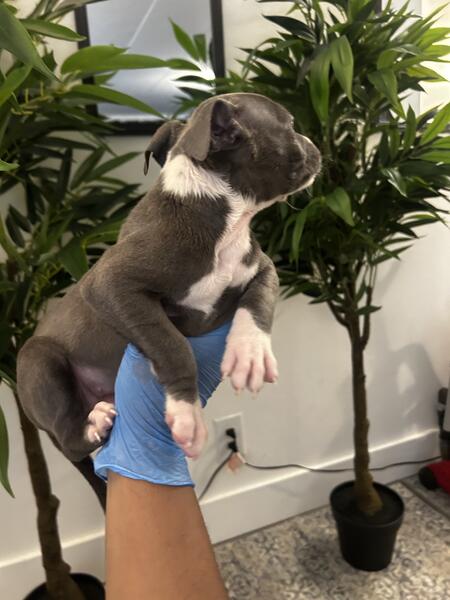 message dashia about this ad Pedigree/ Blood Line: Female,Blue Ribbon and Razor Edge American Bully PUPPY Age: 3 months on April 20th Shots: All shots (she is Dewormed) Dewormed meaning:to prevent worms All Vaccines are updated Personality: Very energetic and Great with children Images of Mom and Dad included: See photos attached Note: She is on puppy food! Free Puppy Bowl included! Serious Buyers ONLY. |