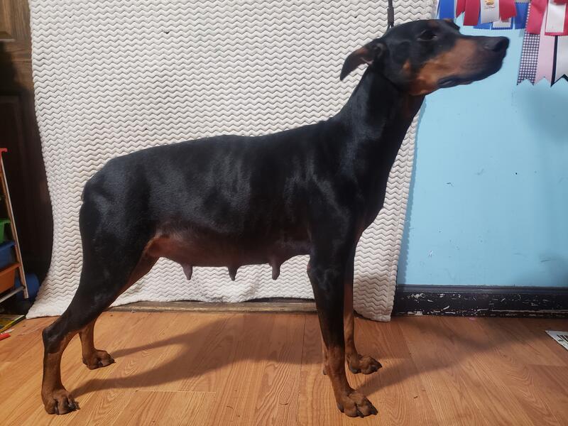 message hlldvdsjobp about this ad 2 liver/rust females, 2 black/rust females, 1 black/rust male. Born 11/22/25. AKC, sire's parents are imported from Serbia and Ukraine. Puppies will be dewormed and vaccinated. Tails docked, dew claws intact. Crop is scheduled for Jan. 14 and is an additional $500. Sold on limited registration. $500 deposit. |
