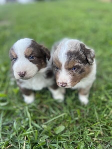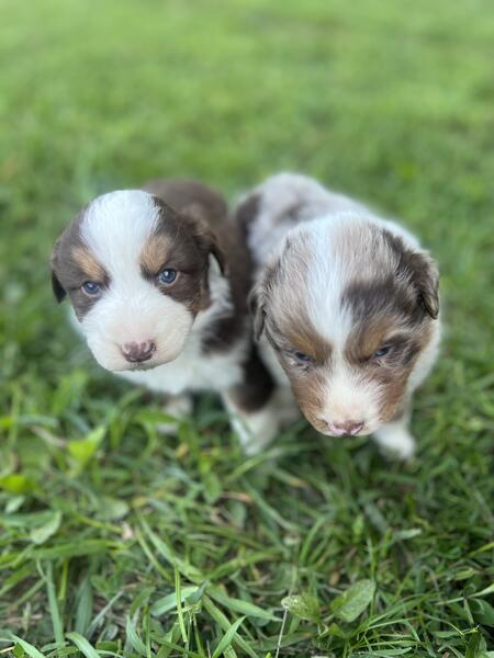 message aaussie about this ad Red Merle male and Red Tri female. Both well build chunky pups. Mom and dad are on site and natured the best. Pups have had their tails docked and raised with kids for more info text 513 335 9107 |