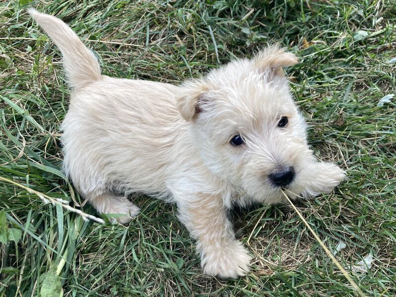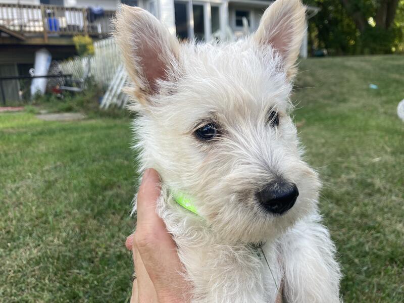 message carnescroftscotties about this ad $2,000 pure bred Wheaten and red wheaten colored Scottish Terrier puppies, 9 weeks old. 4 boys and 2 girls available. Includes AKC registration, microchip and lifetime registration, vaccinations, one year health guarantee. Parents are DNA checked and clear for inherited disorders. Scotties are playful, sassy and smart. They are socialized to get along great with other dogs. Fenton, MI Lindsey 810-445-6780 cell/text |